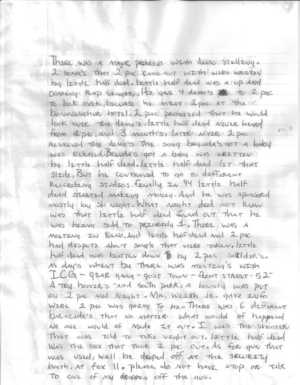 Russell and I made a pact that we were not going to tell anyone about the meeting with the Sheriff’s Department. The investigator called Russell the day before the meeting to generally get an idea of what would be talked about and to confirm the meeting. We were starting to get traction in the case. Russell and I had several social meetings with Dave Demerjian from the DA’s office about the case choosing to meet over a beer rather than cause a stir by Russell’s visit to the DA’s Office. We had given Dave a copy of Tupac:187 and he was unenthusiastic about the idea about reopening the case. When Russell and I compiled the Tupac Murder Facts he started to show genuine interest, “Russ, I need an investigator from inside of law enforcement to move forward on this case.”